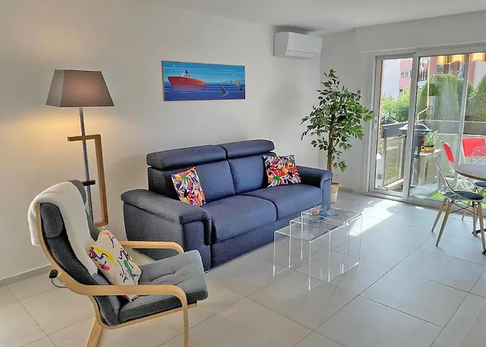 寝室1室のサント・マキシムSileneアパートメントはテラスがあり、プラージュ・ド・ラ・ナルテルから3.2km離れた所に位置しています。 ビジネスやレジャーのお客様のニーズに合わせてWi-Fiと無料の専用駐車場を提供しています。